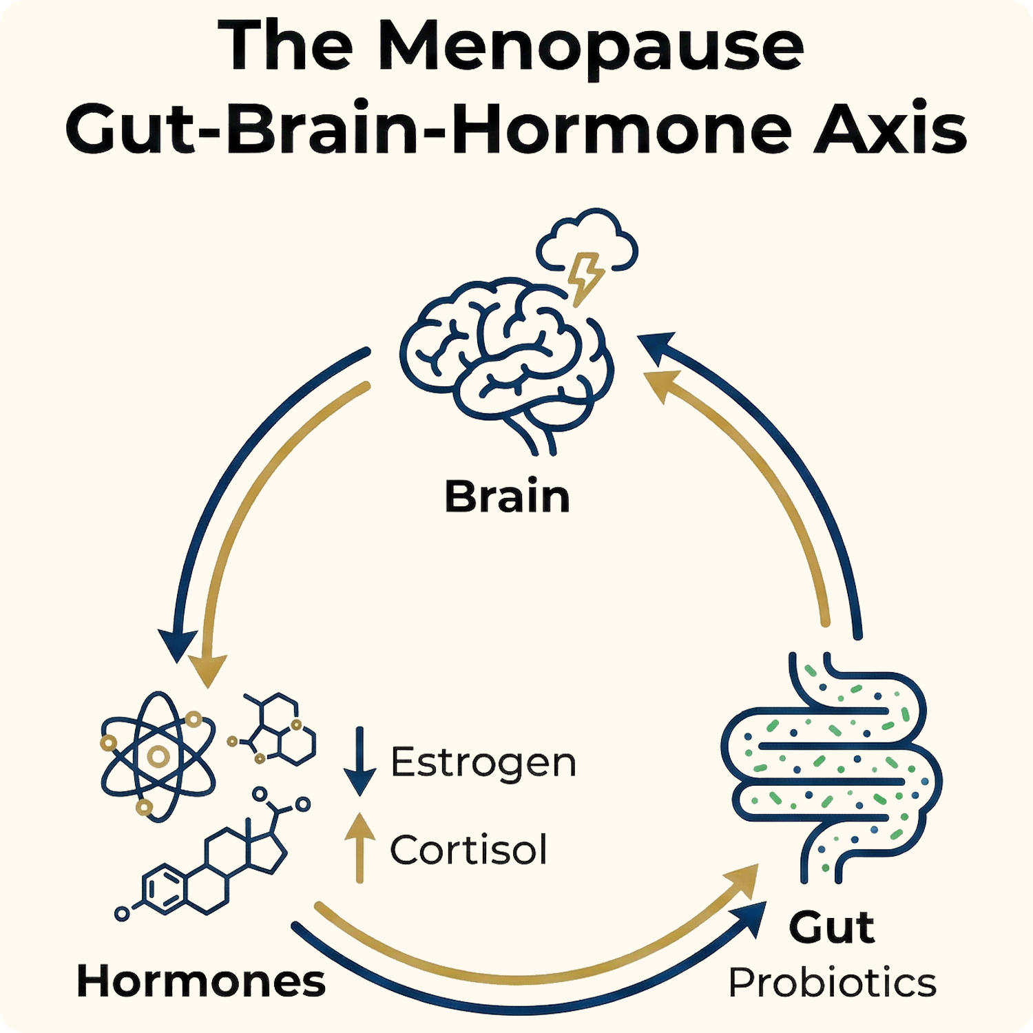 During menopause, dropping estrogen levels disrupt your gut microbiome diversity. We reintroduce targeted probiotic strains clinically shown to support a healthy metabolism and reduce bloating.